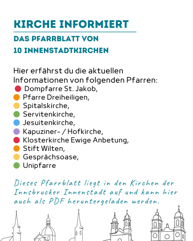 Gottesdienste, Aussprache- & Beichtmöglichkeiten in der Innsbrucker Innenstadt