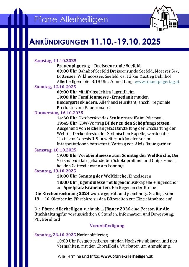 Ankündigungen von 11.-19.10.25 zum Download