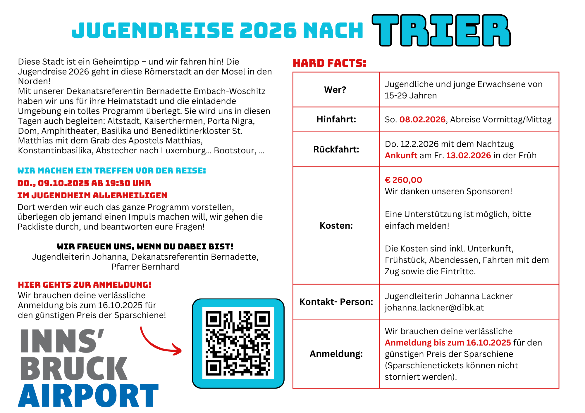 Die Jugendreise 2026 in den Semesterferien geht nach Trier, einer sehr sehenswerten Stadt in Deutschland! Die Anmeldung startet JETZT!