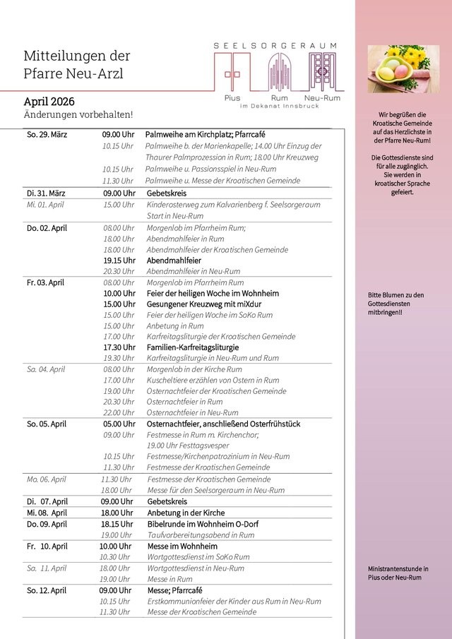 Diözese Innsbruck > Diözese Innsbruck > Dekanat Innsbruck > Seelsorgeraum Pius-Rum-NeuRum > Innsbruck-Neu-Arzl - SR Pius-Rum-NeuRum > Mitteilungen