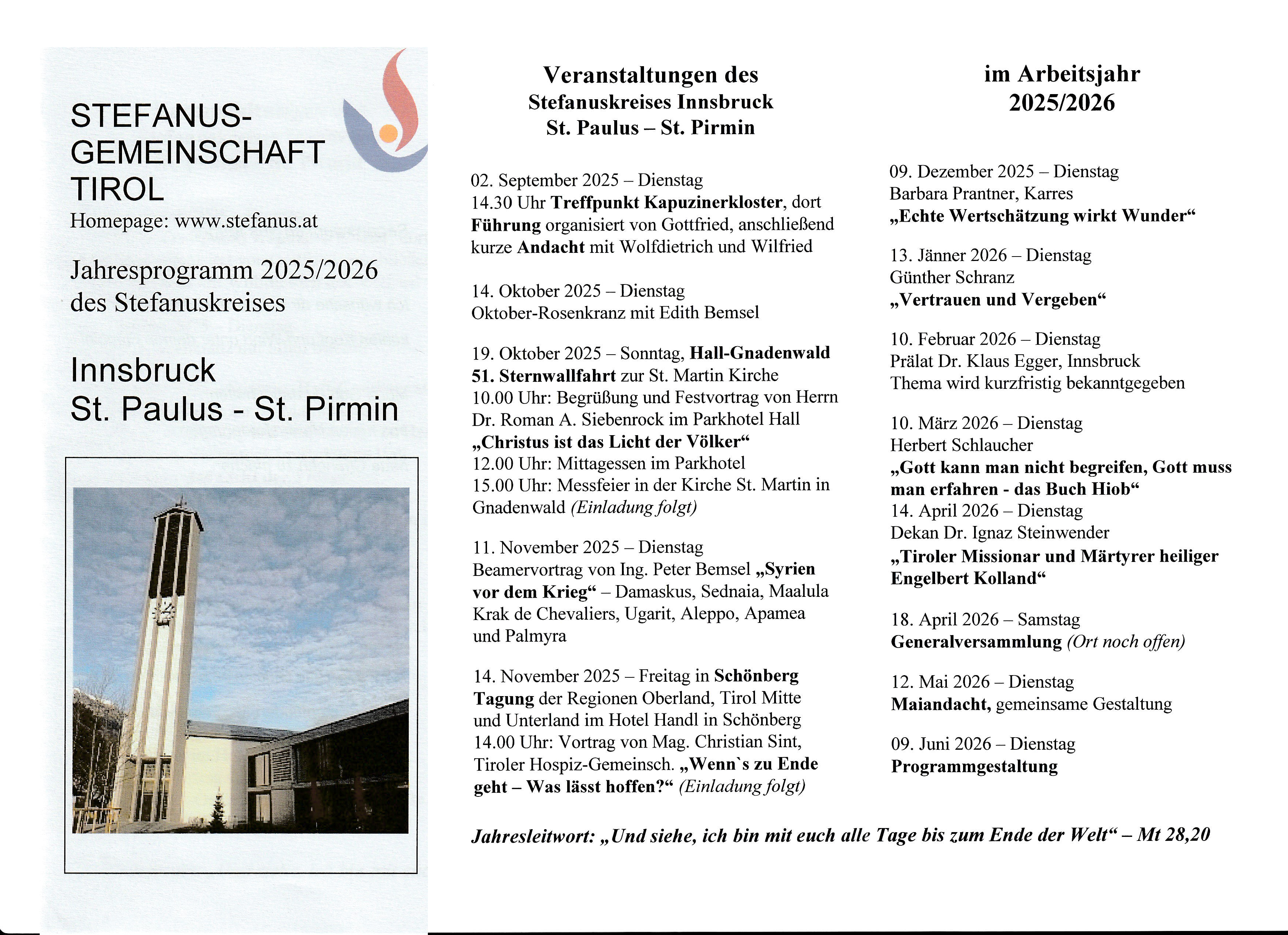 Anmeldung bis: 15. 2. 2026: Pfarrbüro St. Paulus / St.- Pirmin, Tel. 0512 34 42 91 bzw. 0512 36 34 34