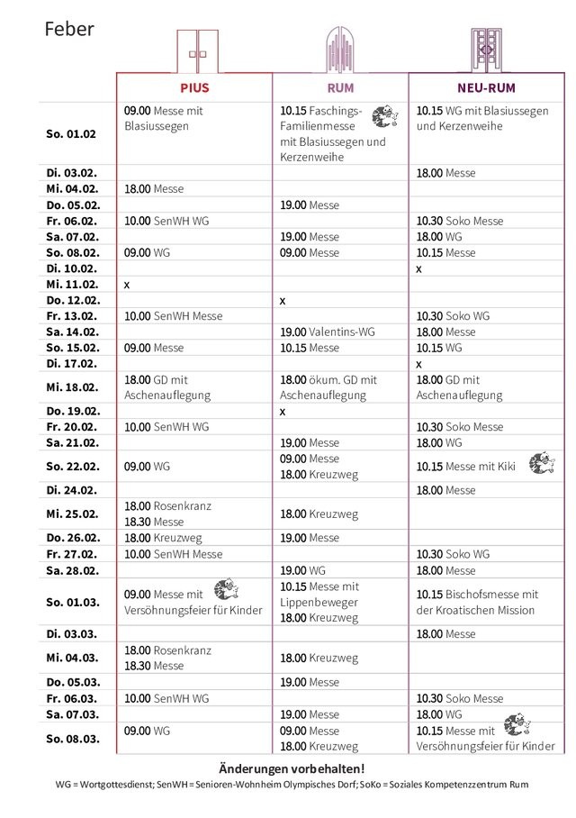 (Do - keine Messen in den Ferien und in Wochen mit Feiertagen)
