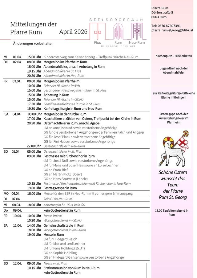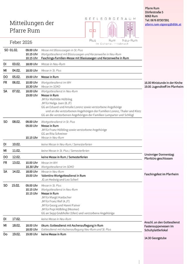 Donnerstag 19.00 Uhr Messe