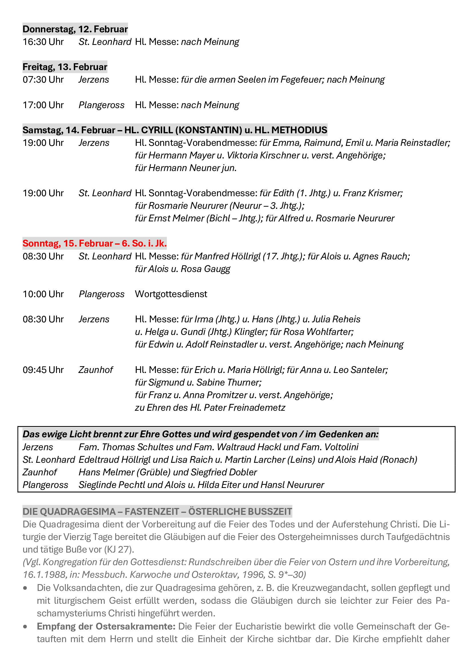 Neben all den äußeren Herausforderungen bleibt der Grundauftrag für jede unserer vier Kirchengemeinden der Auftrag Jesu, das Reich Gottes im konkreten Alltag zu suchen und umzusetzen. „Euch soll es zuerst um Gottes Reich und Gottes Gerechtigkeit gehen, dann wird er euch alles Übrige dazugeben.“ (Mt 6,33). Ich freue mich als zuständiger Pfarrer mit den Gläubigen vor Ort und mit den Gästen, die bei uns Erholung suchen, auf dem Weg zu sein, dem Reich Gottes nachzuspüren und ihm vielleicht auch eine konkrete Gestalt zu geben.