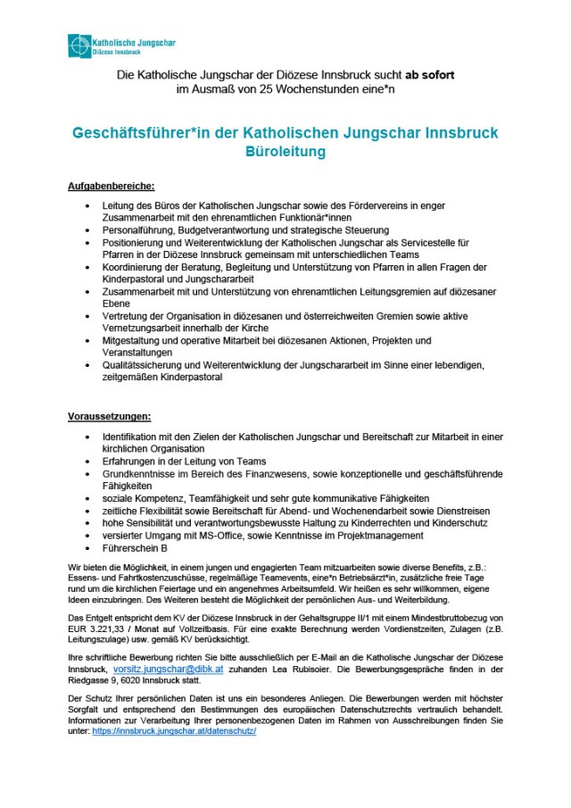Geschäftsführer:in Katholische Jungschar Innsbruck (25 WSt.)