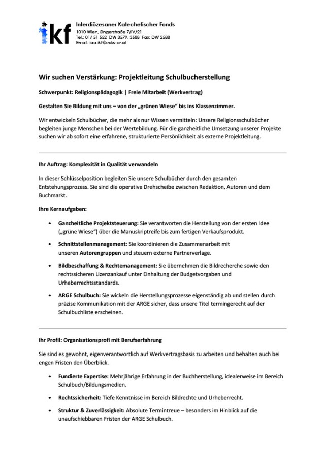Projektleitung Schulbucherstellung, IKF Wien (Remote, Honorarbasis)