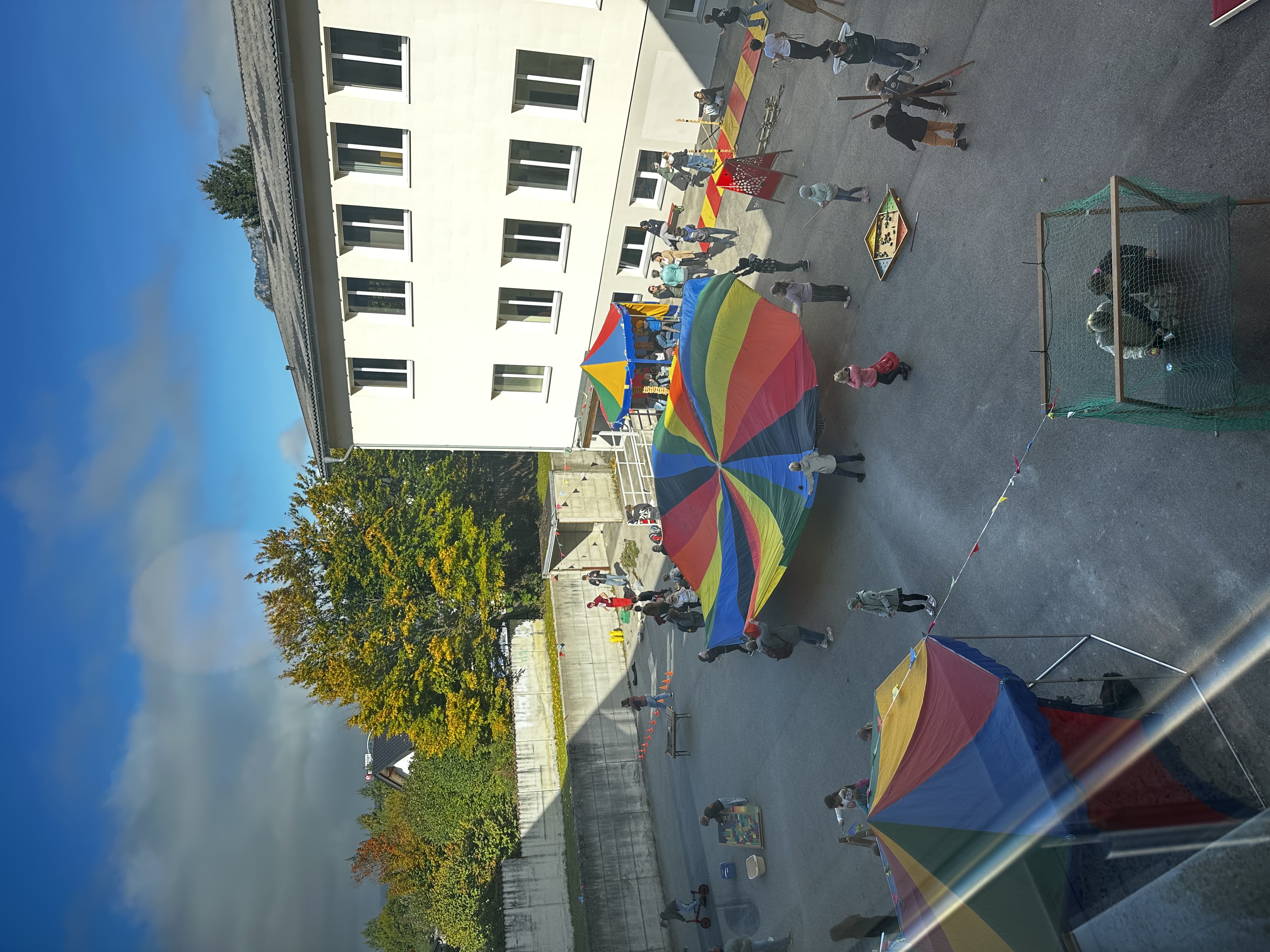 Am Nachmittag wurde die Stadt der Minis in der Schule erkundet. Neben einer Werkstatt mit Dosenlichtern und Postkartenständern aus Draht konnten sich die Minis im Friseursalon gegenseitig bunte Stränen in die Haare flechten. Beim Spielbus wurde Stockbrot gebacken, auf Bobbycars herumgeflitzt oder versucht auf Stelzen zu gehen. Im Rahmen der Experimentierstation wurden mit Blaukrautsaft Veränderungen des PH-Werts erforscht und das ein oder andere Feuer mit Stahlwolle entzündet. Außerdem wurden die Lieder für die Messe geprobt, Bänder geknüpft, sich im Turnsaal bei Brennball ausgetobt oder in der Entspannungsstation einer Fantasiereise gelauscht.